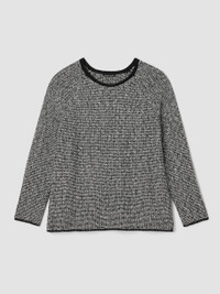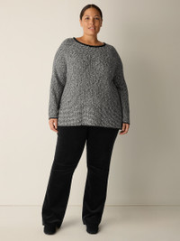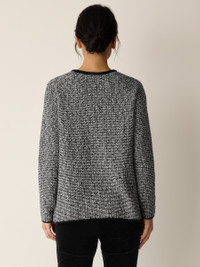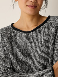A cozy layer to add texture and warmth. The jewel neck top with raglan sleeves, in a soft blend of organic cotton and recycled nylon. Style No. F5VBI-W6272 DESIGN - Close at the shoulders, wider at the hem. A silhouette that fits the body with ease. - Only available online. - Size S measures 25 inches on the body. Size 1X measures 27 1/2 inches on the body. - Jewel neck, raglan seams. - Finished with a rolled edge at the neck. - Style No. F5VBI-W6272 FABRIC - Soft and fluffy, a cozy blend of organic cotton and recycled nylon spun to create a two-tone yarn. - Made in Peru. SUSTAINABILITY - Organic farming supports clean water and healthy soil.