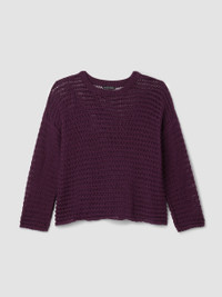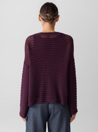 The crew neck top—a light layer transformed by dimensional texture. Made from soft organic cotton that's grown using regenerative farming methods. Style No. S5AYT-W6217 DESIGN - A generous, boxy fit that drapes away from the body to create movement. - Monika is 5'9" and wears a size XS, which measures 23 inches on the body. Size1X measures 26 inches on the body. - Crew neck, drop shoulder. - Ribbed trim at the neck. - Style No. S5AYT-W6217 FABRIC - The organic cotton that first brought us to Peru, now with visual texture thanksto a twisted cord yarn. Now grown using regenerative farming methods thatsupport soil health and biodiversity. Grown, spun, dyed and knit in Peru. - Hand wash cold. Reshape and lay flat to dry. May snag on jewelry. - Made in Peru. 100% Organic Cotton. SUSTAINABILITY - Organic farming supports clean water and healthy soil.