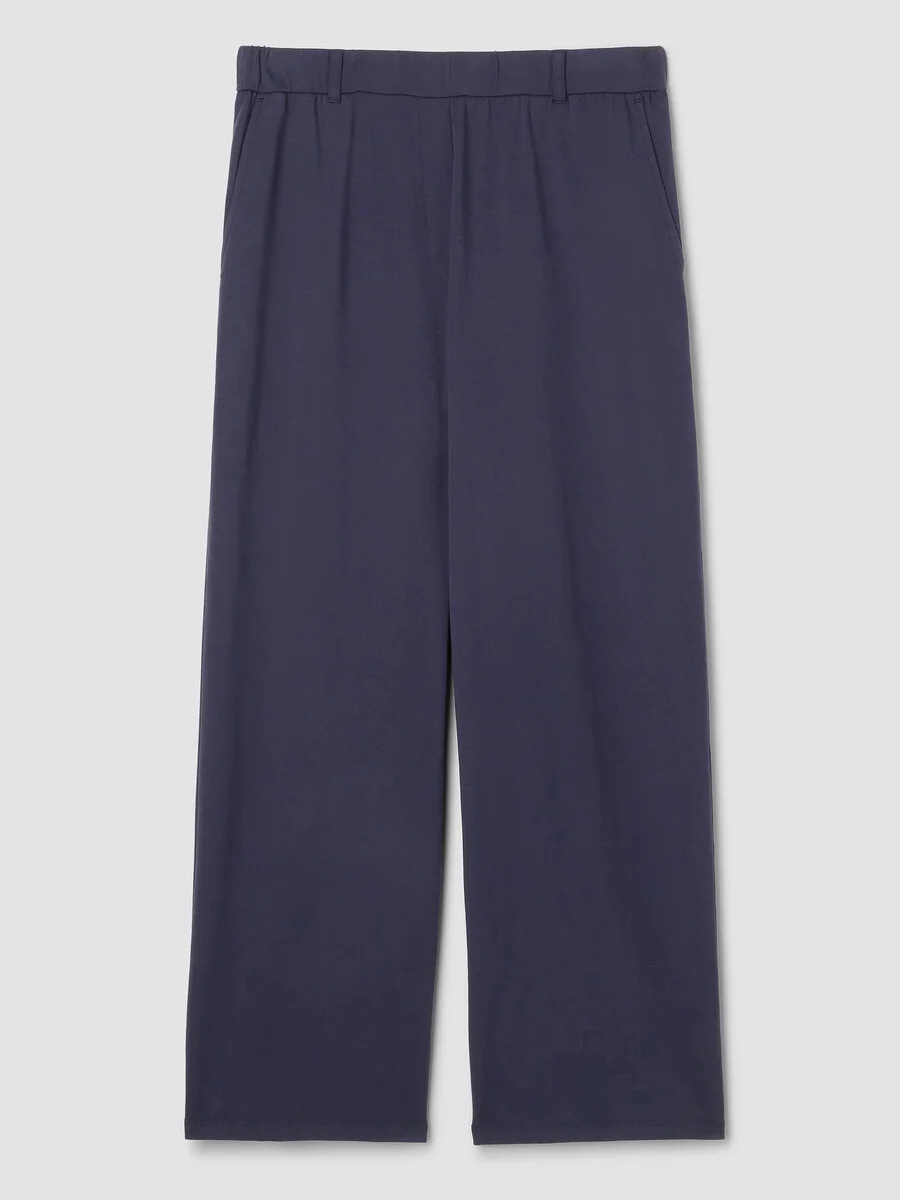 Comfort meets polish. A drapey wide-leg pant that dresses up or down, in smooth jersey made from soft organic cotton. Style No. S6OJH-P4909 DESIGN - Slim through the hips, wider through the leg. Fits the body with ease. - Kalyane is 5'10" and wears a size S in Ink. - 1 1/2-inch elastic waistband, faux fly front. - Front pleats, slash pockets, belt loops. - Back darts for shape. - 13-inch rise; 29-inch inseam; 12-inch leg opening (size S). 12 1/2-inch rise; 27-inch inseam; 11 1/2-inch leg opening (size PS). 15-inch rise; 29-inch inseam; 13-inch leg opening (size 1X). - Style No. S6OJH-P4909 FABRIC - Soft and stretchy. A jersey knit with the luxurious feel that comes from extra-long staple organic cotton. We use fiber that's grown using regenerative farming methods that focus on soil health and biodiversity. - Machine wash cold. Tumble dry low. - Made in Peru. 93% Organic Cotton/7% Spandex. SUSTAINABILITY - Organic farming supports clean water and healthy soil.