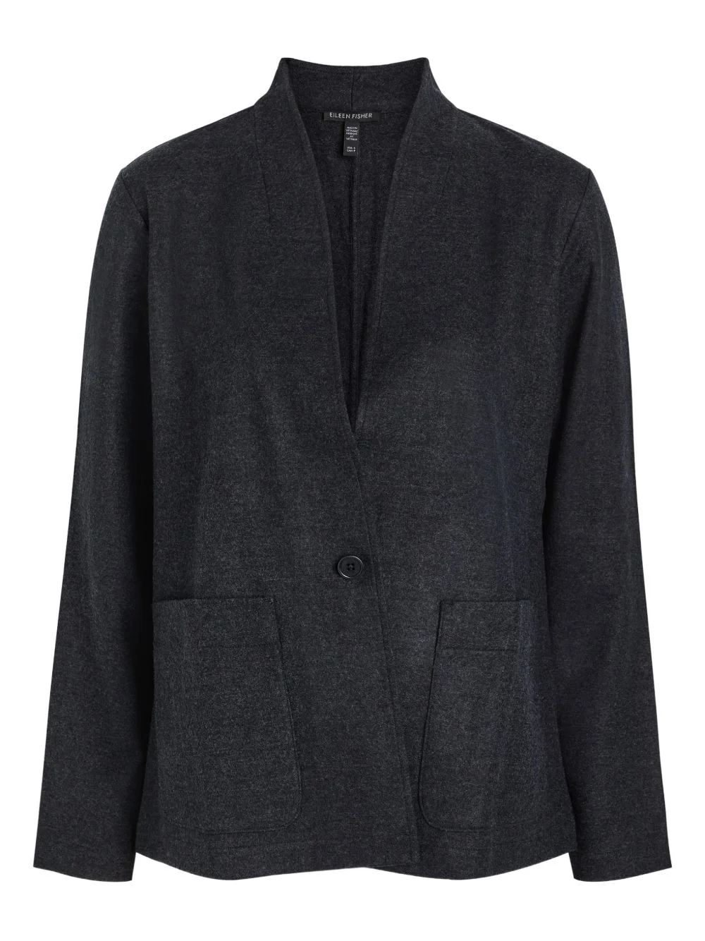 pocketed single-breasted jacket Highlights - Charcoal grey - Patch pockets - Single-breasted - Button fastening - V-neck - Long sleeves Imported Composition Wool 100% Washing instructions Dry Clean Only