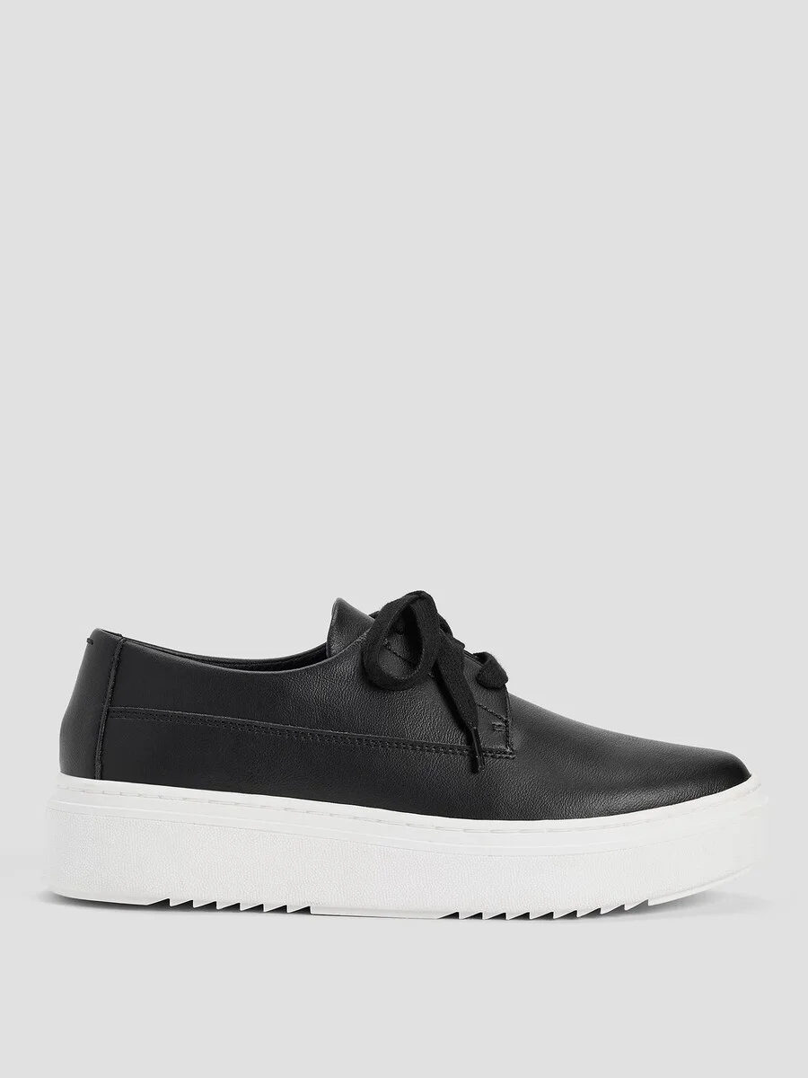 Classic styling makes this platform sneaker ideal for every day. With an oxford-inspired laced upper. In soft leather. Style No. EF47511 DESIGN - 1 1/2-inch heel with 1 1/2-inch platform; lace-up style. - Padded toe, arch and heel for comfort; leather lining. - Comes with a drawstring dust bag. - Style No. EF47511 FABRIC - Leather upper; rubber outsole for comfort, flexibility and traction. - Made in China.