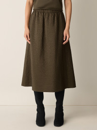 Any occasion, season after season. An easy silhouette you can dress up or down, in quilted silk with subtly puckered texture. Style No. F5QVV-S4425 DESIGN - An A-line silhouette that’s wider at the hem. Fits the body with ease. - Size S measures 35 inches on the body. Size 1X measures 36 inches on the body. - 1 1/2-inch elastic waistband. - On-seam pockets. - Style No. F5QVV-S4425 FABRIC - Luxurious yet casual. Light and lustrous silk, quilted for puckery texture. - Made in Indonesia. SUSTAINABILITY - This fabric is bluesign® APPROVED. It's dyed with safer chemistry using less water and less energy, meeting the bluesign® CRITERIA.