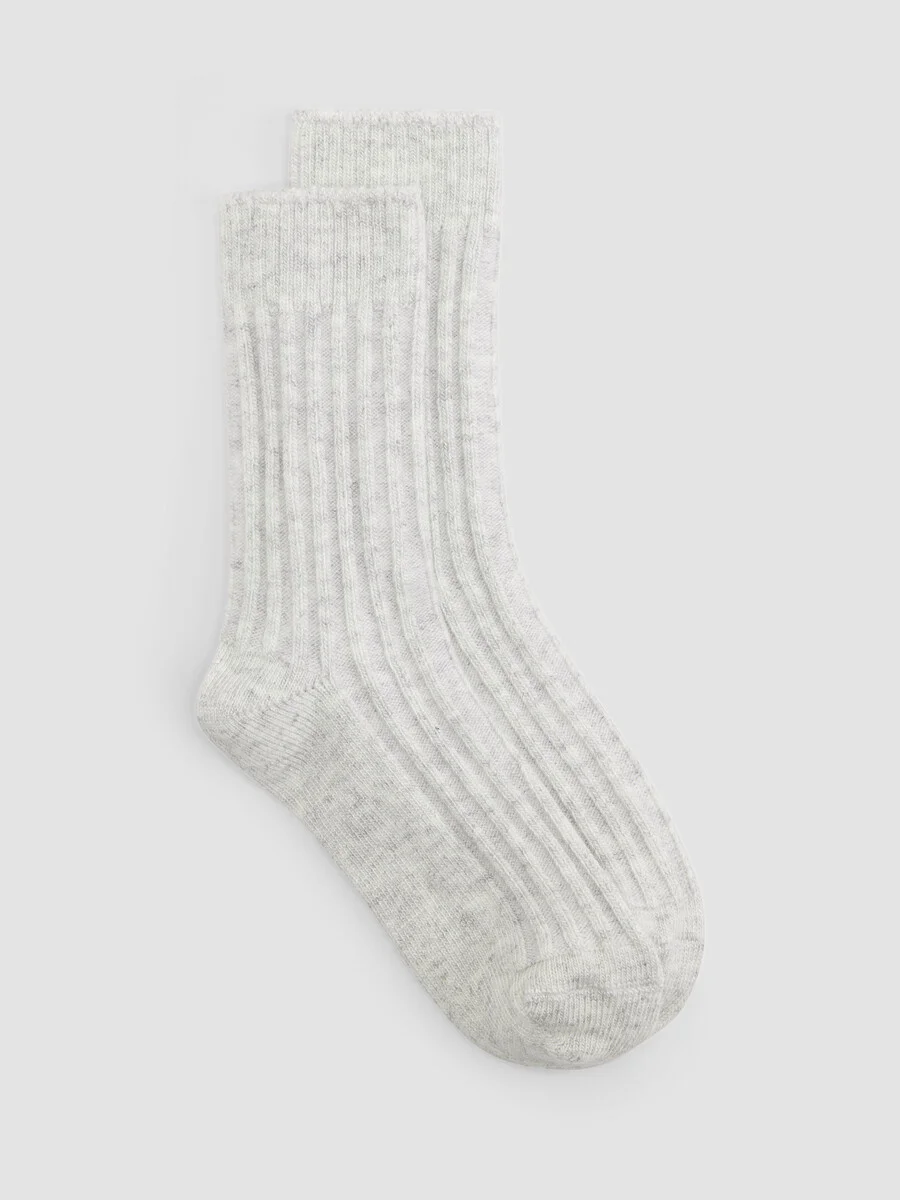 Cozy crew socks set apart by ribbed texture. In our recycled nylon blend with a touch of cashmere and silk. Style No. F5DRB-L0416 DESIGN - Nonbinding cuff for comfort; finished with hand-linked toe seams. - One size fits women's shoe sizes 6-10. - Style No. F5DRB-L0416 - SKU: 198895143428 FABRIC - Comfort that understands luxury. We've added cashmere and silk to our blend of Tencel™ Lyocell and recycled nylon. Knit with a touch of spandex to help the socks stay in place. - Machine wash cold. Hang dry or lay flat to dry. - Made in Thailand. 33% Recycled Nylon/33% Lyocell /15% Nylon/9% Silk/9% Recycled Cashmere/1% Spandex. SUSTAINABILITY - Tencel™ Lyocell is made from responsibly harvested trees.