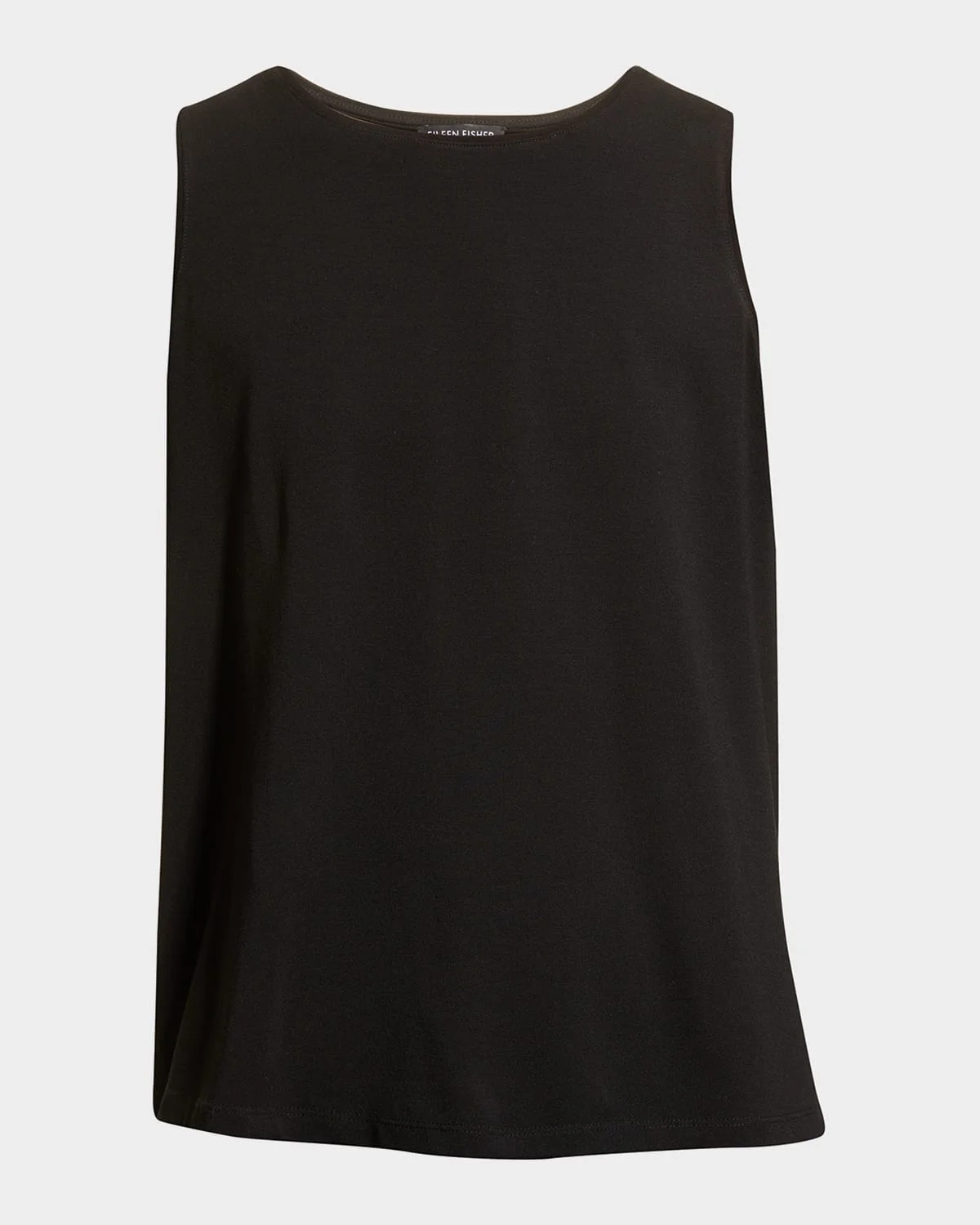 Eileen Fisher stretch jersey knit tank top Approx. 24.5"L from shoulders to hem Scoop neckline Sleeveless Side slit hem Relaxed fit Pullover style Tencel® lyocell/spandex Imported