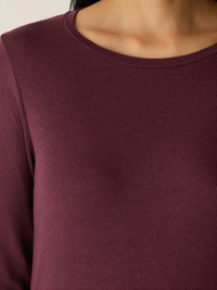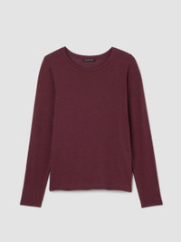 A snug long-sleeve tee—wear it alone or as a lightweight layer. In a subtly sheer blend of cotton and Tencel™ Lyocell that dresses up or down. Style No. F5BFG-T6176 DESIGN - Our closest fit, designed to hug the body. With stretch for maximum comfort. - Black top only available online. - Kalyane is 5'10" and wears a size S, which measures 24 1/2 inches on the body. Size 1X measures 27 inches on the body. - Round neck, long sleeves. - Finished with banding at the neck. - Style No. F5BFG-T6176 FABRIC - A lightweight knit with a subtly sheer finish. The fluidity of Tencel™ Lyocell meets the softness of cotton. We use fiber that's grown using regenerative farming methods that support soil health and biodiversity. - Machine wash cold. Tumble dry low. Do not dry clean. - Made in Peru. 48% Organic Cotton/48% Tencel Lyocell/4% Spandex. SUSTAINABILITY - Tencel™ Lyocell fiber is made from responsibly harvested trees.