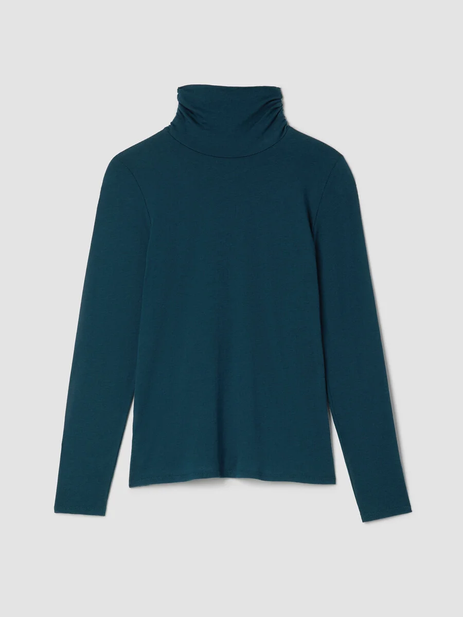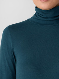 The outfit starter, in a subtly sheer knit. Your key to layering this season—and beyond. In a soft blend of cotton and Tencel™ Lyocell that dresses up or down. Style No. F5BFG-T6175 DESIGN - Our closest fit, designed to hug the body. With stretch for maximum comfort. - Kalyane is 5'10" and wears a size S, which measures 24 1/2 inches on the body. - Turtleneck, long sleeves. - Style No. F5BFG-T6175 FABRIC - A lightweight knit with a subtly sheer finish. The fluidity of Tencel™ Lyocell meets the softness of organic cotton. Made with fiber that's grown using regenerative farming methods that support soil health and biodiversity. - Machine wash cold. Tumble dry low. Do not dry clean. - Made in Peru. 48% Organic Cotton/48% Tencel Lyocell/4% Spandex. SUSTAINABILITY - Tencel™ Lyocell fiber is made from responsibly harvested trees.