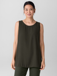 Simple and elegant. A drapey ballet neck tank with long lines and side slits, in our responsibly dyed Silk Georgette Crepe. Wear it day or night. Made in a Fair Trade Certified™ factory. Style No. F5GC1-U4274 DESIGN - Close at the shoulders, wider at the hem. A silhouette that fits the body withease. - Only available online. - Bo Bay is 5'9" and wears a size XS, which measures 28 1/2 inches on the body.Size 1X measures 31 1/2 inches on the body. - Ballet neck, sleeveless, 7-inch side slits. - Style No. F5GC1-U4274 FABRIC - Light, fluid and versatile. Silk with a subtly textured matte surface that we'vecounted on since 1999. - Machine wash cold. Line dry. - Made in China. 100% Silk. SUSTAINABILITY - Our Fair Trade Certified™ factories meet rigorous social and environmentalstandards. By choosing Fair Trade Certified™ products, you’re helping to improvethe lives of workers, build resilient communities and protect the environment. - This fabric is bluesign® APPROVED. It's dyed with safer chemistry using lesswater and less energy, meeting the bluesign® CRITERIA.