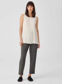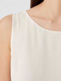 Simple and elegant. A drapey ballet neck tank with long lines and side slits, in our responsibly dyed Silk Georgette Crepe. Wear it day or night. Made in a Fair Trade Certified™ factory. Style No. F5GC1-U4274 DESIGN - Close at the shoulders, wider at the hem. A silhouette that fits the body withease. - Only available online. - Bo Bay is 5'9" and wears a size XS, which measures 28 1/2 inches on the body.Size 1X measures 31 1/2 inches on the body. - Ballet neck, sleeveless, 7-inch side slits. - Style No. F5GC1-U4274 FABRIC - Light, fluid and versatile. Silk with a subtly textured matte surface that we'vecounted on since 1999. - Machine wash cold. Line dry. - Made in China. 100% Silk. SUSTAINABILITY - Our Fair Trade Certified™ factories meet rigorous social and environmentalstandards. By choosing Fair Trade Certified™ products, you’re helping to improvethe lives of workers, build resilient communities and protect the environment. - This fabric is bluesign® APPROVED. It's dyed with safer chemistry using lesswater and less energy, meeting the bluesign® CRITERIA.