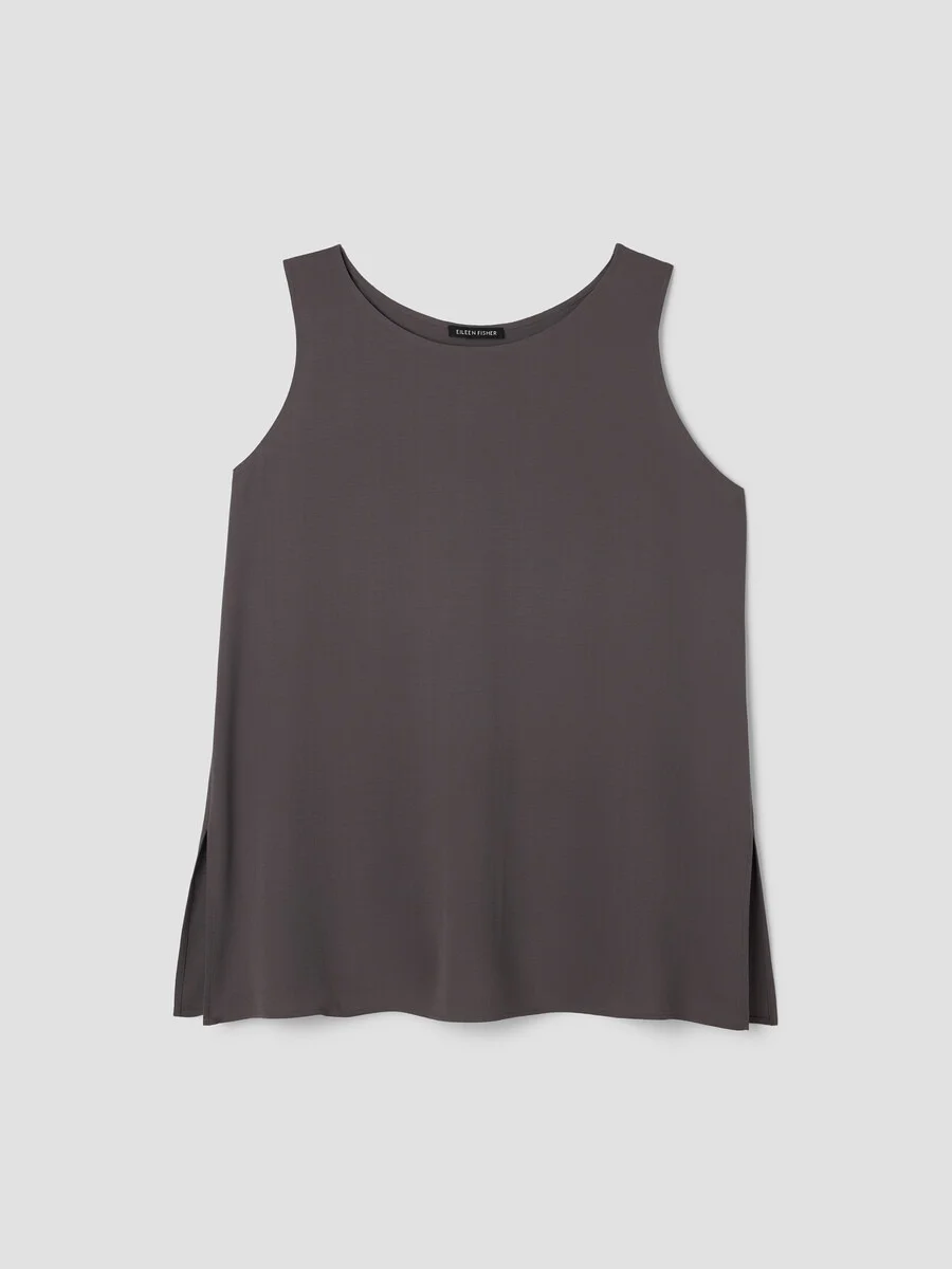 Simple and elegant. A drapey ballet neck tank with long lines and side slits, in our responsibly dyed Silk Georgette Crepe. Wear it day or night. Made in a Fair Trade Certified™ factory. Style No. F5GC1-U4274 DESIGN - Close at the shoulders, wider at the hem. A silhouette that fits the body withease. - Only available online. - Bo Bay is 5'9" and wears a size XS, which measures 28 1/2 inches on the body.Size 1X measures 31 1/2 inches on the body. - Ballet neck, sleeveless, 7-inch side slits. - Style No. F5GC1-U4274 FABRIC - Light, fluid and versatile. Silk with a subtly textured matte surface that we'vecounted on since 1999. - Machine wash cold. Line dry. - Made in China. 100% Silk. SUSTAINABILITY - Our Fair Trade Certified™ factories meet rigorous social and environmentalstandards. By choosing Fair Trade Certified™ products, you’re helping to improvethe lives of workers, build resilient communities and protect the environment. - This fabric is bluesign® APPROVED. It's dyed with safer chemistry using lesswater and less energy, meeting the bluesign® CRITERIA.