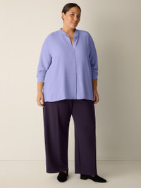 Polished and versatile. A drapey band collar shirt with a button front, in our signature Silk Georgette Crepe. Wear it day or night. Made in a Fair Trade Certified™ factory. Style No. F5GC1-T6090 DESIGN - Close at the shoulders, wider at the hem. A silhouette that fits the body with ease. - Graphite top only available online and in our LAB store. - Jisu is 5'9" and wears a size S, which measures 26 inches on the body. Size 1X measures 28 1/2 inches on the body. - Band collar, button front and button cuffs with double pleat. - 4-inch side slits, back yoke with center back box pleat. - Mother-of-pearl buttons. - Style No. F5GC1-T6090 FABRIC - Light, fluid and versatile. Silk with a subtly textured matte surface that we've counted on since 1999. - Machine wash cold, gentle cycle. Line dry. - Made in Indonesia. 100% Silk. SUSTAINABILITY - Our Fair Trade Certified™ factories meet rigorous social and environmental standards. By choosing Fair Trade Certified™ products, you’re helping to improve the lives of workers, build resilient communities and protect the environment. - This fabric is bluesign® APPROVED. It's dyed with safer chemistry using less water and less energy, meeting the bluesign® CRITERIA.