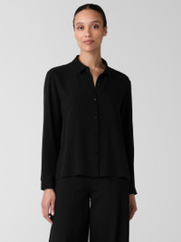Simple yet sophisticated. An elegant classic collar shirt in our responsibly dyed silk. With a button front and relaxed fit. Made in a Fair Trade Certified™ factory. Style No. F5GC1-T5775 DESIGN - Close at the shoulders, wider at the hem. A silhouette that fits the body withease. - Size S measures 26 inches on the body. Size 1X measures 28 1/2 inches on thebody. - Classic collar, button front and button cuffs with double pleat. - Back yoke with center back box pleat. - 4-inch side slits, mother-of-pearl buttons. - Style No. F5GC1-T5775 FABRIC - Light, fluid and versatile. Silk with a subtly textured matte surface that we'vecounted on since 1999. - Machine wash cold. Line dry. - Made in Indonesia. 100% Silk. SUSTAINABILITY - Our Fair Trade Certified™ factories meet rigorous social and environmentalstandards. By choosing Fair Trade Certified™ products, you’re helping to improvethe lives of workers, build resilient communities and protect the environment. - This fabric is bluesign® APPROVED. It's dyed with safer chemistry using lesswater and less energy, meeting the bluesign® CRITERIA.