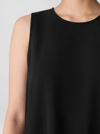 An elegant tank to take you from day to night. With a round neck and subtle side slits, in our responsibly dyed silk georgette. Made in a Fair Trade Certified™ factory. Style No. F5GC1-U4403 DESIGN - Close at the shoulders, wider at the hem. A silhouette that fits the body withease. - Only available at select EILEEN FISHER stores. - Jisu is 5'9" and wears a size S, which measures 23 inches on the body. Size 1Xmeasures 25 1/2 inches on the body. - Round neck, sleeveless. - 3-inch side slits, keyhole back closure. - This style was designed for every body. It's Good for Petites, which means theproportions will fit and flatter customers 5'4" and under. - Style No. F5GC1-U4403 FABRIC - Light, fluid and versatile. Silk with a subtly textured matte surface that we'vecounted on since 1999. - Machine wash cold. Line dry. - Made in China. 100% Silk. SUSTAINABILITY - Our Fair Trade Certified™ factories meet rigorous social and environmentalstandards. By choosing Fair Trade Certified™ products, you’re helping to improvethe lives of workers, build resilient communities and protect the environment. - This fabric is bluesign® APPROVED. It's dyed with safer chemistry using lesswater and less energy, meeting the bluesign® CRITERIA.