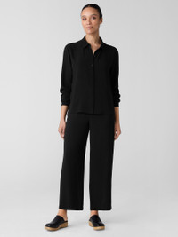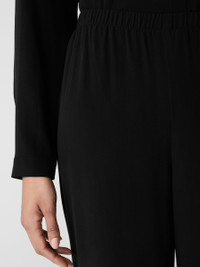 An elevated essential. The timeless straight pant with an elastic waistband and ankle-baring length. In our signature Silk Georgette Crepe, perfect day or night. Style No. QRGC1-P4716 DESIGN - Straight through the leg. Fits the body with ease. - Start with the Foundation. This pant is designed to be worn on repeat. It’s part of our system of dressing that lets you do more with less. - Drew is 5'9" and wears a size XS. Nina is 5'3" and wears a size PS. - Pant is fully lined in the color Bone only. - 1-inch shirred elastic waistband. - 10 1/2-inch rise; 28-inch inseam; 10-inch leg opening (size XS). 10 1/2-inch rise; 26-inch inseam; 10-inch leg opening (size PS). 13-inch rise; 28-inch inseam; 11-inch leg opening (size 1X). - Style No. QRGC1-P4716 FABRIC - Light, fluid and versatile. Silk with a subtly textured matte surface that we've counted on since 1999. SUSTAINABILITY - This fabric is bluesign® APPROVED. It's dyed without toxic chemicals using less water and less energy, meeting the bluesign® CRITERIA.