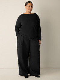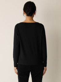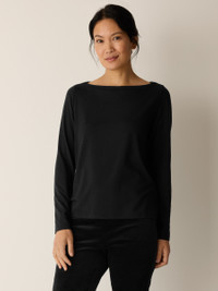 Easy and elevated. An understated bateau neck top with long sleeves, in our body-skimming stretch jersey. Style No. F5TFF-T6300 DESIGN - Fits close to the body. Our slim fit is easier than the industry standard—with stretch for maximum comfort. - Jisu is 5'9" and wears a size XS in Black, which measures 24 inches on the body. Size 1X measures 26 1/2 inches on the body. - Bateau neck, long sleeves. - Style No. F5TFF-T6300 FABRIC - Fluid and polished. A medium-weight jersey that moves effortlessly from day to night. - Machine wash cold. Line dry. - Made in Vietnam. 92% Tencel™ Lyocell/8% Elastane. SUSTAINABILITY - Tencel™ Lyocell fiber is made from responsibly harvested trees.