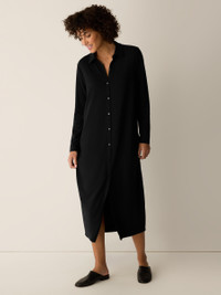 Simple yet elevated. A classic collar dress with a button front and subtle oval silhouette, in our body-skimming jersey knit. Style No. S6TFF-D5416 DESIGN - Close at the shoulders, wider at the hem. A silhouette that fits the body with ease. - Select colors may vary by store. - Astrid is 5'9" and wears a size S in Black, which measures 49 inches on the body. Size PS measures 46 inches on the body. Size 1X measures 50 1/2 inches on the body. - Classic collar, button front with river shell buttons. - Back yoke with center box pleat. - Style No. S6TFF-D5416 FABRIC - Fluid and polished. A medium-weight jersey that moves effortlessly from day to night. - Machine wash cold. Line dry. - Made in Vietnam. 92% Tencel™ Lyocell/8% Elastane. SUSTAINABILITY - Tencel™ Lyocell fiber is made from responsibly harvested trees.