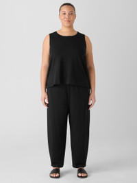 Our classic lantern pant with a softly sculpted hem. Versatile and stretchy in jersey made from Tencel™ Lyocell. Style No. S5TFF-P4366 DESIGN - Subtly curved through the leg, slightly tapered at the ankle. Fits the body with ease. - Only available at select EILEEN FISHER stores. - Flaviana is 5'9" and wears a size S. - 1 1/2-inch elastic waistband, on-seam pockets. - Side panel detail. - 11-inch rise; 27-inch inseam; 7-inch leg opening (size S). 13 1/2-inch rise; 27-inch inseam; 8-inch leg opening (size 1X). - Style No. S5TFF-P4366 FABRIC - Fluid and polished. A medium-weight jersey that moves effortlessly from day to night. - Machine wash cold. Line dry. - Made in Vietnam. 92% Tencel™ Lyocell/ 8% Elastane SUSTAINABILITY - Tencel™ Lyocell fiber is made from responsibly harvested trees.