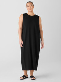 Polish with ease. A simple tank dress with a round neck and long, flattering lines. In our body-skimming jersey knit that dresses up or down. Style No. F5TFF-D5320 DESIGN - An easy fit that's slightly tapered at the hem. - Only available online. - Polina is 5'10" and wears a size XS, which measures 49 1/2 inches on the body.Size PS measures 47 inches on the body. Size 1X measures 51 1/2 inches on thebody. - Round neck, sleeveless. - Style No. F5TFF-D5320 FABRIC - Fluid and polished. A medium-weight jersey that moves effortlessly from day tonight. - Machine wash cold. Line dry. - Made in Vietnam. 92% Tencel™ Lyocell/8% Elastane. SUSTAINABILITY - Tencel™ Lyocell fiber is made from responsibly harvested trees.