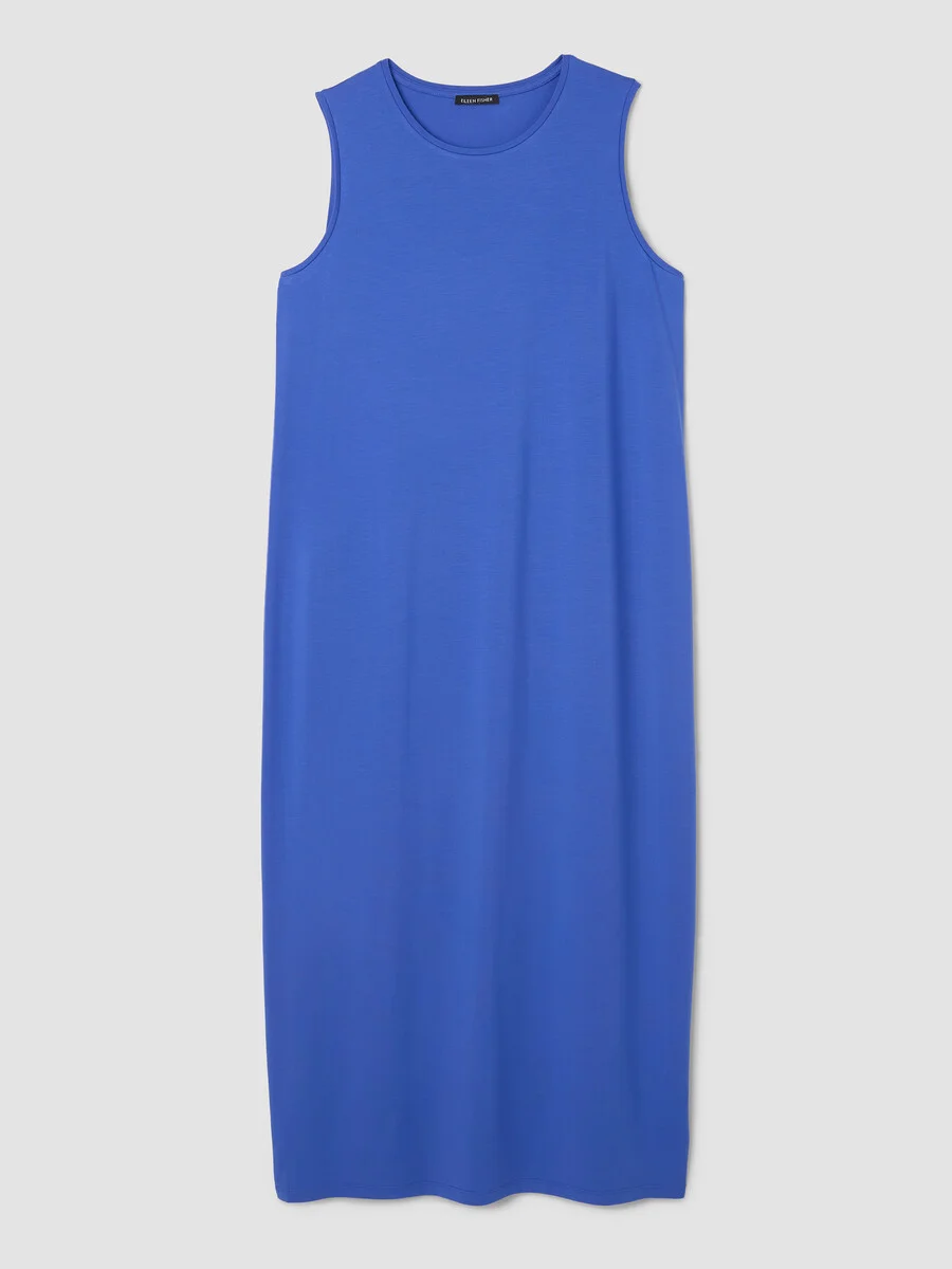 Polish with ease. A simple tank dress with a round neck and long, flattering lines. In our body-skimming jersey knit that dresses up or down. Style No. S6TFF-D5320 DESIGN - An easy fit that's slightly tapered at the hem. - Ravyanshi is 5'8" and wears a size S in Blue Star, which measures 50 inches on the body. Size PS measures 47 inches on the body. Size 1X measures 51 1/2 inches on the body. - Round neck, sleeveless. - Style No. S6TFF-D5320 FABRIC - Fluid and polished. A medium-weight jersey that moves effortlessly from day to night. - Machine wash cold. Line dry. - Made in Vietnam. 92% Tencel™ Lyocell/8% Elastane. SUSTAINABILITY - Tencel™ Lyocell fiber is made from responsibly harvested trees.