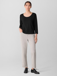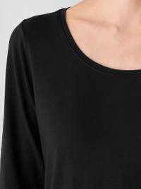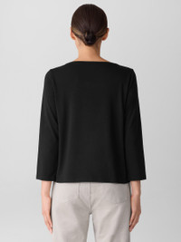 The scoop neck top. A sleek silhouette with long sleeves and a slim fit, in our body-skimming jersey. Style No. F5TFF-T6369 DESIGN - Fits close to the body. Our slim fit is easier than the industry standard—with stretch for maximum comfort. - Only available at select EILEEN FISHER stores. - Polina is 5'10" and wears a size XS, which measures 23 1/2 inches on the body. Size 1X measures 26 1/2 inches on the body. - Scoop neck, 3/4 sleeves. - Finished with banding at the neck. - Style No. F5TFF-T6369 FABRIC - Fluid and polished. A medium-weight jersey that moves effortlessly from day to night. - Machine wash cold. Line dry. - Made in Vietnam. 92% Tencel™ Lyocell/8% Elastane. SUSTAINABILITY - Tencel™ Lyocell fiber is made from responsibly harvested trees.
