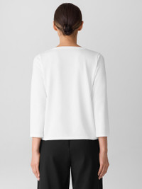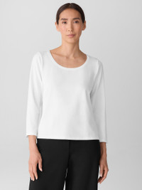 The scoop neck top. A sleek silhouette with long sleeves and a slim fit, in our body-skimming jersey. Style No. F5TFF-T6369 DESIGN - Fits close to the body. Our slim fit is easier than the industry standard—with stretch for maximum comfort. - Only available at select EILEEN FISHER stores. - Polina is 5'10" and wears a size XS, which measures 23 1/2 inches on the body. Size 1X measures 26 1/2 inches on the body. - Scoop neck, 3/4 sleeves. - Finished with banding at the neck. - Style No. F5TFF-T6369 FABRIC - Fluid and polished. A medium-weight jersey that moves effortlessly from day to night. - Machine wash cold. Line dry. - Made in Vietnam. 92% Tencel™ Lyocell/8% Elastane. SUSTAINABILITY - Tencel™ Lyocell fiber is made from responsibly harvested trees.