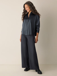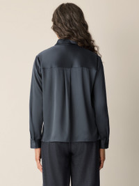 Classic—with a touch of shine. An elegant button-up shirt that goes straight into the wash, in our lustrous silk charmeuse. Made in a Fair Trade Certified™ factory. Style No. F5SM9-T5775 DESIGN - Close at the shoulders, wider at the hem. A silhouette that fits the body with ease. - Size XS measures 25 1/2 inches on the body. Size PS measures 24 1/2 inches on the body. Size 1X measures 28 1/2 inches on the body. - Classic collar, button front and button cuffs with double pleat. - Back yoke with center box pleat; 4-inch side slits. - Mother-of-pearl buttons. - Style No. F5SM9-T5775 FABRIC - Lustrous, satin-woven silk with a touch of stretch for movement. - Made in Vietnam. SUSTAINABILITY - Our Fair Trade Certified™ factories meet rigorous social and environmental standards. By choosing Fair Trade Certified™ products, you’re helping to improve the lives of workers, build resilient communities and protect the environment. - This fabric is bluesign® APPROVED. It's dyed with safer chemistry using less water and less energy, meeting the bluesign® CRITERIA.