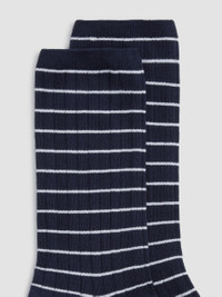 A striped trouser sock set apart by subtle ribbing. Soft and seasonless, in light organic cotton. Style No. S6SXR-L0407 DESIGN - Nonbinding cuff for comfort; finished with hand-linked toe seams. - One size fits women's shoe sizes 6-10. - Style No. S6SXR-L0407 - SKU: 198895223243 FABRIC - Cotton is washed for extra softness—we add a touch of spandex to help the socks stay in place. - Machine wash cold. Lay flat to dry. - Made in Thailand. 79% Organic Cotton/20% Nylon/1% Spandex. SUSTAINABILITY - Organic farming supports clean water and healthy soil.