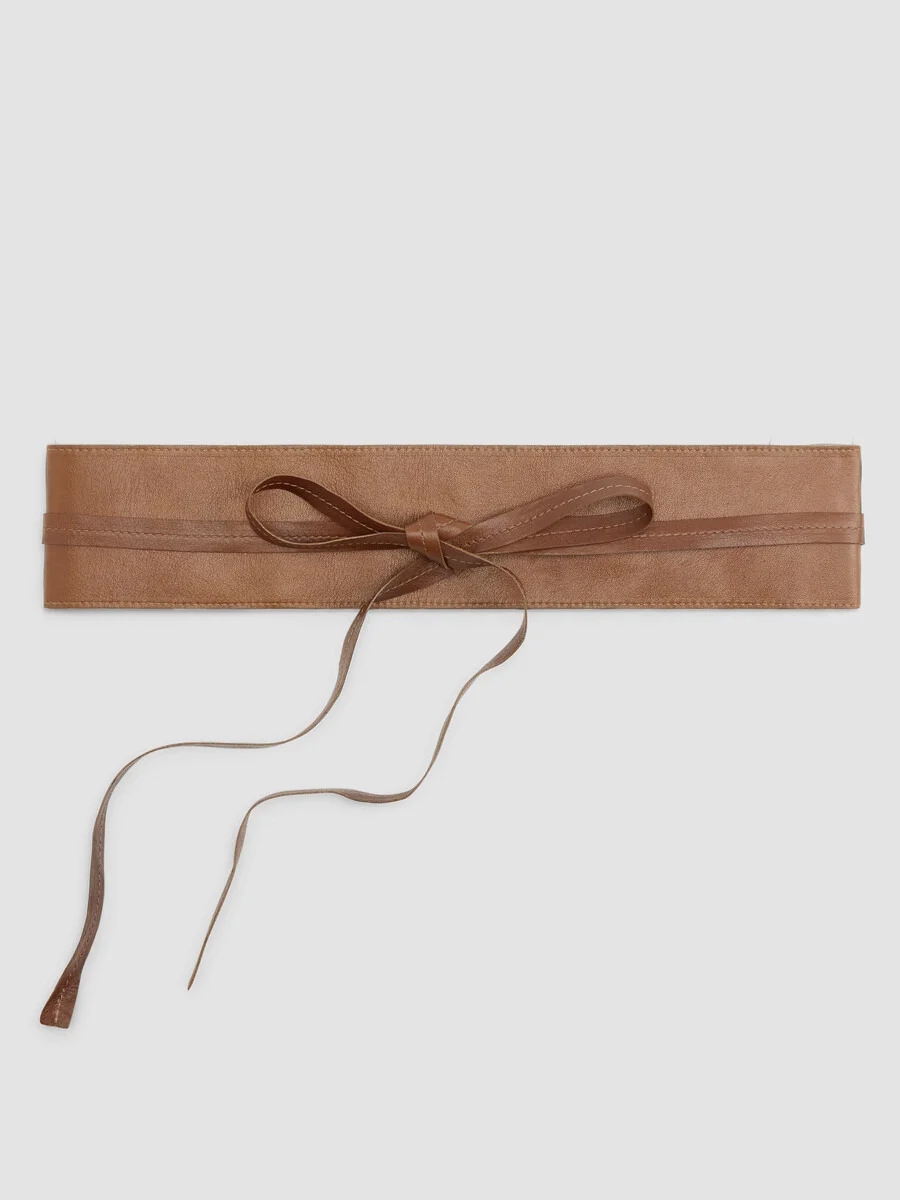 A waist-defining wrap belt with a front tie. In soft and buttery leather on one side and smooth suede on the other. Wear it your way. Style No. F5WDJ-B0118 DESIGN - Only available at select EILEEN FISHER stores. - 2 layers of edge-stitched leather and suede; ends wrap around the body and secure with a knot. - 3-inches wide at widest part of the belt. - Length of front belt without strings (widest part of the belt)— XXS measures 20 inches. XS measures 24 inches. S measures 28 inches. M measures 29 inches. L measures 30 inches. XL measures 32 inches. 1X measures 34 inches. 2X measures 36 inches. 3X measures 38 inches. - Total belt length— XXS measures 82 inches. XS measures 88 inches. S measures 94 inches. M measures 99 inches. L measures 104 inches. XL measures 109 inches. 1X measures 114 inches. 2X measures 119 inches. 3X measures 125 inches. - Style No. F5WDJ-B0118 FABRIC - Our leather belts are made with the finest leather and materials. - Leather is a natural material that will change with time. - Made in India.
