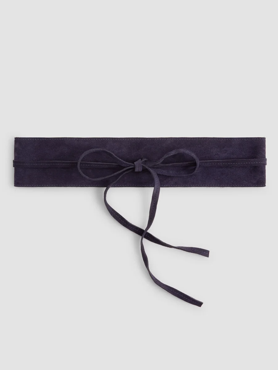 A waist-defining wrap belt with a front tie. In soft and smooth suede. Style No. F5ZUW-B0321 DESIGN - Only available online. - 2 layers of edge-stitched suede; ends wrap around the body and secure with a knot. - 3-inches wide at widest part of the belt. - Length of front belt without strings (widest part of the belt)— XXS measures 20 inches. XS measures 24 inches. S measures 28 inches. M measures 29 inches. L measures 30 inches. XL measures 32 inches. 1X measures 34 inches. 2X measures 36 inches. 3X measures 38 inches. - Total belt length— XXS measures 82 inches. XS measures 88 inches. S measures 94 inches. M measures 99 inches. L measures 104 inches. XL measures 109 inches. 1X measures 114 inches. 2X measures 119 inches. 3X measures 125 inches. - Style No. F5ZUW-B0321 FABRIC - Smooth and supple suede that's soft to the touch. - Professionally leather clean only. Color transfer may occur. - Leather is a natural material that will change with time. - Made in India. 100% Leather.