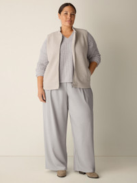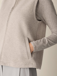An easy layer you can wear on its own or over a tee. The stand collar vest with a zip front, in a soft organic cotton doubleknit. Style No. F5SBP-V1356 DESIGN - Close at the shoulders, wider at the hem. A silhouette that fits the body with ease. - Valerie is 5'9" and wears a size XS in Black, which measures 23 inches on the body. Size 1X measures 25 1/2 inches on the body. - Stand collar, zip front. - Welt pockets. - Style No. F5SBP-V1356 FABRIC - Soft and substantial, a medium-weight doubleknit made with organic cotton and a touch of recycled polyester for stretch. - Machine wash cold. Tumble dry low. - Made in Vietnam. 86% Organic Cotton/14% Recycled Poly/4% Spandex. SUSTAINABILITY - Organic farming supports clean water and healthy soil.