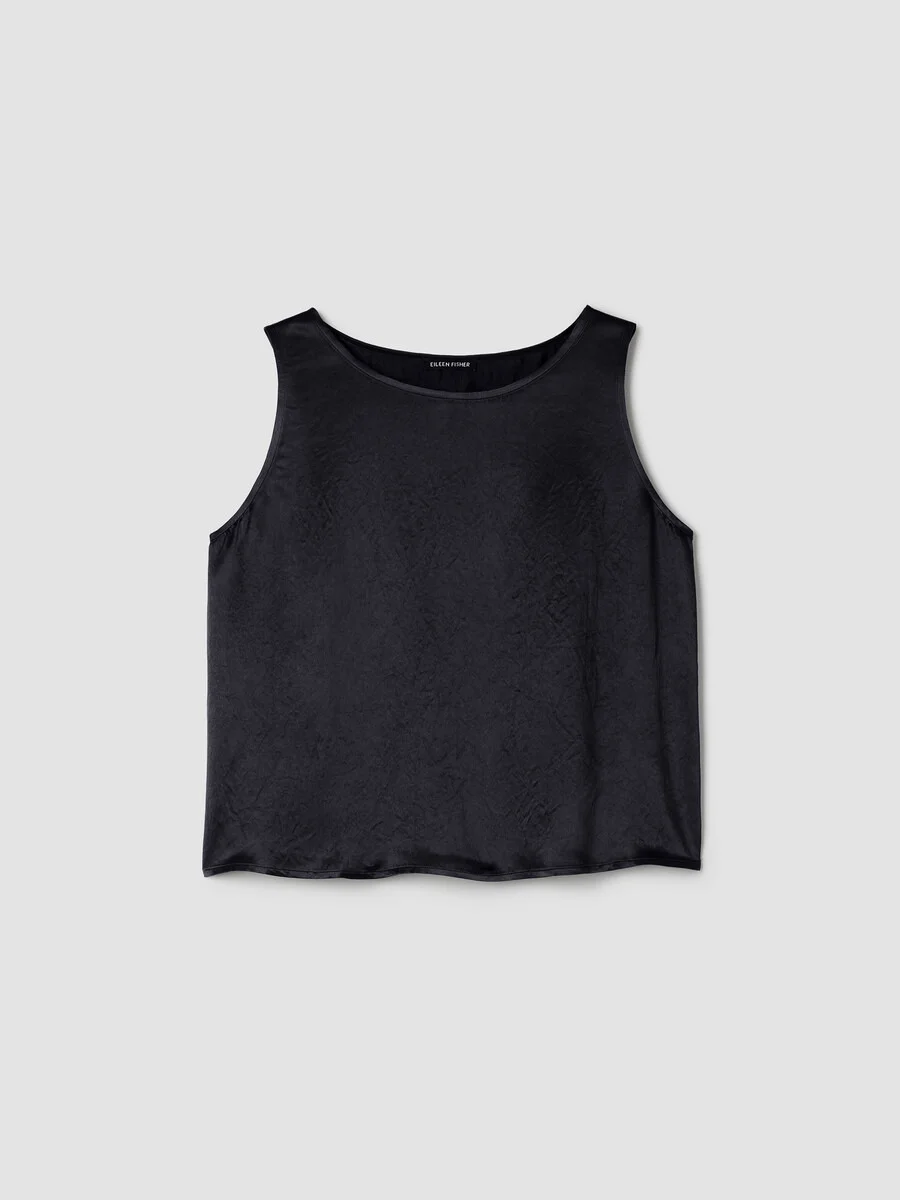 Simply sophisticated. An elegant ballet neck tank in a lustrous satin weave with crinkled texture. Made in a Fair Trade Certified™ factory. Style No. F5SNY-U4393 DESIGN - Close at the shoulders, wider at the hem. A silhouette that fits the body with ease. - Only available at select EILEEN FISHER stores. - Jisu is 5'9" and wears a size XS, which measures 21 1/2 inches on the body. Size 1X measures 24 1/2 inches on the body. - Ballet neck, sleeveless. - 2-inch side slits. - Style No. F5SNY-U4393 FABRIC - Medium-weight satin with uniquely crinkled texture—and plenty of shine. Made from Naia™ Renew cellulosic fiber produced in part with recycled material, helping keep waste out of landfills. - Machine wash cold. Tumble dry low. - Made in Indonesia. 100% NaiaTM Acetate. SUSTAINABILITY - Our Fair Trade Certified™ factories meet rigorous social and environmental standards. By choosing Fair Trade Certified™ products, you’re helping to improve the lives of workers, build resilient communities and protect the environment. - This fabric is bluesign® APPROVED. It's dyed with safer chemistry using less water and less energy, meeting the bluesign® CRITERIA.