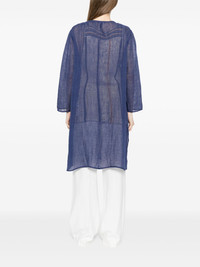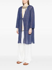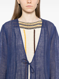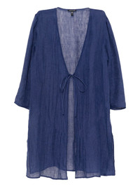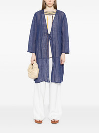 linen coat Highlights - Royal blue - Front tie fastening - V-neck - Long sleeves Imported Composition Organic Linen 100% SIZE & FIT Model measurements Height 5 ft 10 in(1.77 m) Bust/Chest 30.31 in(77 cm) Hips 36.22 in(92 cm) Waist 24.8 in(63 cm) FittingInformation Designed to be unstructured, offering a loose fit throughout The tie fastening gives an adaptable and personalised fit Made from a midweight non-stretch fabric Washing instructions Machine Wash