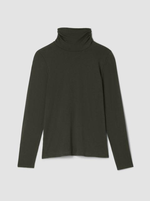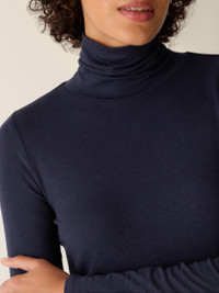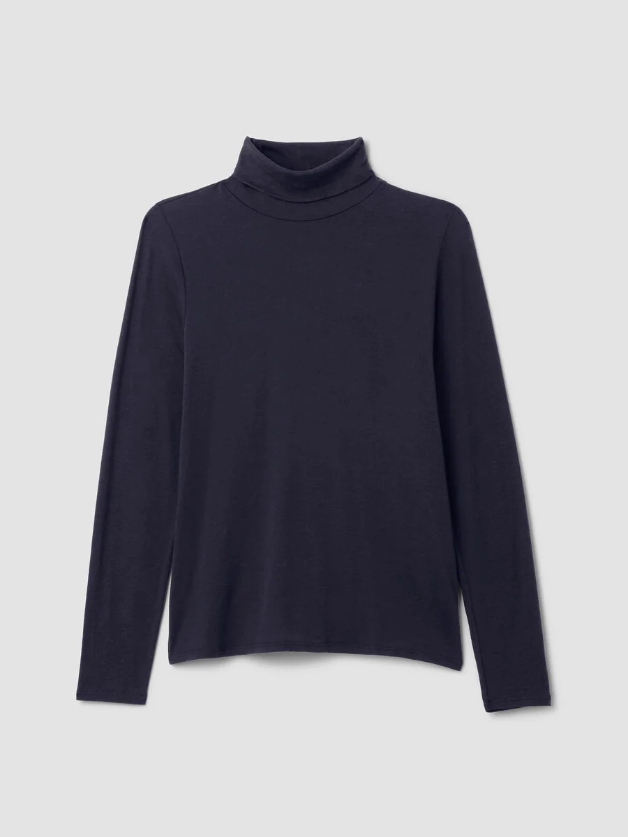 The outfit starter, in a subtly sheer knit. Your key to layering this season—and beyond. In a soft blend of cotton and Tencel™ Lyocell that dresses up or down. Style No. F5BFG-T6175 DESIGN - Our closest fit, designed to hug the body. With stretch for maximum comfort. - Kalyane is 5'10" and wears a size S, which measures 24 1/2 inches on the body. - Turtleneck, long sleeves. - Style No. F5BFG-T6175 FABRIC - A lightweight knit with a subtly sheer finish. The fluidity of Tencel™ Lyocell meets the softness of organic cotton. Made with fiber that's grown using regenerative farming methods that support soil health and biodiversity. - Machine wash cold. Tumble dry low. Do not dry clean. - Made in Peru. 48% Organic Cotton/48% Tencel Lyocell/4% Spandex. SUSTAINABILITY - Tencel™ Lyocell fiber is made from responsibly harvested trees.