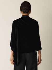 Occasion-ready elegance. An asymmetrical poncho that drapes beautifully over tops and dresses, in our plush, washable velvet. Made in a Fair Trade Certified™ factory. Style No. F5VLO-N1579 DESIGN - Close at the shoulders, wider at the hem. A silhouette that fits the body with ease. - Poncho measures 32 1/2 inches on the body from neck to bottom hem. - Open at the sides. - Fully lined in cupro. - Style No. F5VLO-N1579 - SKU: 198895084172 FABRIC - Our iconic viscose silk velvet, now made in part from pulp derived from recycled cotton. - Machine wash cold. Tumble dry low. Do not dry clean. - Made in Indonesia. 80% Viscose/20% Silk. SUSTAINABILITY - Our Fair Trade Certified™ factories meet rigorous social and environmental standards. By choosing Fair Trade Certified™ products, you’re helping to improve the lives of workers, build resilient communities and protect the environment. - This fabric is bluesign® APPROVED. It's dyed with safer chemistry using less water and less energy, meeting the bluesign® CRITERIA.