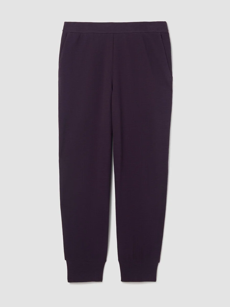 Elevated comfort. An easy jogger pant with an elastic waist and ankle cuffs, in a breathable blend of cotton and Tencel™ Lyocell. Style No. F5WXA-P4834 DESIGN - A slouchy silhouette with a longer rise and tapered ankle. Fits the body with ease. - Select colors may vary by store. Black pant only available online. - Valerie is 5'9" and wears a size XS in Lunette. - 2-inch elastic waistband, slash pockets. - 2 1/2-inch ankle cuffs, back darts for shape. - 11-inch rise; 28-inch inseam; 5-inch leg opening (size S). 13-inch rise; 28-inch inseam; 6-inch leg opening (size 1X). - Style No. F5WXA-P4834 FABRIC - A cozy doubleknit with waffle texture on the outside and a smooth surface on the inside. In a soft blend of cotton and Tencel™ Lyocell. - Machine wash cold. Line dry. - Made in Vietnam. 60% Organic Cotton/40% Tencel™ Lyocell. SUSTAINABILITY - Tencel™ Lyocell fiber is made from responsibly harvested trees.