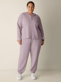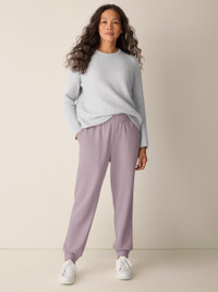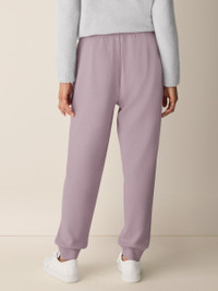 Elevated comfort. An easy jogger pant with an elastic waist and ankle cuffs, in a breathable blend of cotton and Tencel™ Lyocell. Style No. F5WXA-P4834 DESIGN - A slouchy silhouette with a longer rise and tapered ankle. Fits the body with ease. - Select colors may vary by store. Black pant only available online. - Valerie is 5'9" and wears a size XS in Lunette. - 2-inch elastic waistband, slash pockets. - 2 1/2-inch ankle cuffs, back darts for shape. - 11-inch rise; 28-inch inseam; 5-inch leg opening (size S). 13-inch rise; 28-inch inseam; 6-inch leg opening (size 1X). - Style No. F5WXA-P4834 FABRIC - A cozy doubleknit with waffle texture on the outside and a smooth surface on the inside. In a soft blend of cotton and Tencel™ Lyocell. - Machine wash cold. Line dry. - Made in Vietnam. 60% Organic Cotton/40% Tencel™ Lyocell. SUSTAINABILITY - Tencel™ Lyocell fiber is made from responsibly harvested trees.
