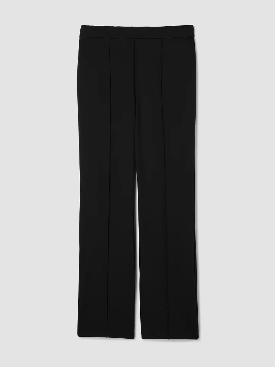 The kick pant. An effortless silhouette with a subtle flare at the leg, in stretch ponte made with Tencel™ Lyocell. Easy to live in—and easy to wash. Made in a Fair Trade Certified™ factory. Style No. S6TJH-P4900 DESIGN - A slim fit that subtly flares at the ankle. - Drew is 5'9" and wears a size XS in Black. - 1 1/2-inch elastic waistband. - Center front and back pintucks, back welt pockets. - Back darts for shape. - 10 1/2-inch rise; 27 1/2-inch inseam; 9-inch leg opening (size S). 10-inch rise; 25 1/2-inch inseam; 8-inch leg opening (size PS). 12 1/2-inch rise; 27 1/2-inch inseam; 10-inch leg opening (size 1X). - Style No. S6TJH-P4900 FABRIC - A sophisticated doubleknit with just the right amount of structure—and just the right amount of stretch. - Machine wash cold. Line dry. - Made in Vietnam. 68% Tencel™ Lyocell/29% Nylon/3% Spandex. SUSTAINABILITY - Our Fair Trade Certified™ factories meet rigorous social and environmental standards. By choosing Fair Trade Certified™ products, you’re helping to improve the lives of workers, build resilient communities and protect the environment. - Tencel™ Lyocell fiber is made from responsibly harvested trees.