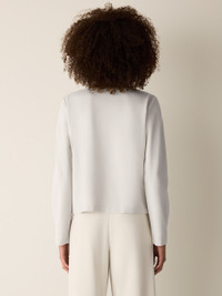 The round neck jacket. A polished layer in our signature ponte that's easy to live in, and easy to wash. Made in a Fair Trade Certified™ factory. Style No. S6TJX-J5831 DESIGN - Close at the shoulders, wider at the hem. A silhouette that fits the body with ease. - Astrid is 5'9" and wears a size S in Black, which measures 23 inches on the body. Size PS measures 21 1/2 inches on the body. Size 1X measures 25 1/2 inches on the body. - Round neck, hidden zip front, front patch pockets. - Style No. S6TJX-J5831 FABRIC - The sophistication of our signature doubleknit, now made with recycled nylon. Just the right amount of structure—and the right amount of stretch. - Machine wash cold. Line dry. - Made in Vietnam. 66% Tencel™ Lyocell/29% Recycled Nylon/3% Elastane/2% Nylon. SUSTAINABILITY - Our Fair Trade Certified™ factories meet rigorous social and environmental standards. By choosing Fair Trade Certified™ products, you’re helping to improve the lives of workers, build resilient communities and protect the environment. - Recycled nylon keeps waste out of the landfill. It's part of our commitment to changing the way clothes are made. - Tencel™ Lyocell fiber is made from responsibly harvested trees.