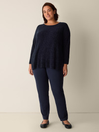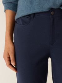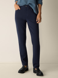 The slim jean: a modern silhouette with a flattering high rise, in our signature stretch ponte. Easy to live in—and easy to wash. Made in a Fair Trade Certified™ factory. Style No. F5TJX-P4708 DESIGN - Fits close to the body. Our slim fit is easier than the industry standard—with stretch for maximum comfort. - Kalyane is 5'10" and wears a size S in Ink. - 1 1/2-inch waistband, fly front with button and zipper closure. - Belt loops, back yoke, 5-pocket styling. - 11-inch rise; 30-inch inseam; 6 1/2-inch leg opening (size S). 10-inch rise; 28-inch inseam; 6-inch leg opening (size PS). 13-inch rise; 30-inch inseam; 7-inch leg opening (size 1X). - Style No. F5TJX-P4708 FABRIC - The sophistication of our signature doubleknit, now made with recycled nylon. Just the right amount of structure—and the right amount of stretch. - Machine wash cold. Line dry. - Made in Vietnam. 66% Tencel™ Lyocell/29% Recycled Nylon/3% Elastane/2% Nylon. SUSTAINABILITY - Our Fair Trade Certified™ factories meet rigorous social and environmental standards. By choosing Fair Trade Certified™ products, you’re helping to improve the lives of workers, build resilient communities and protect the environment. - Tencel™ Lyocell fiber is made from responsibly harvested trees. - Recycled nylon keeps waste out of the landfill. It's part of our commitment to changing the way clothes are made.