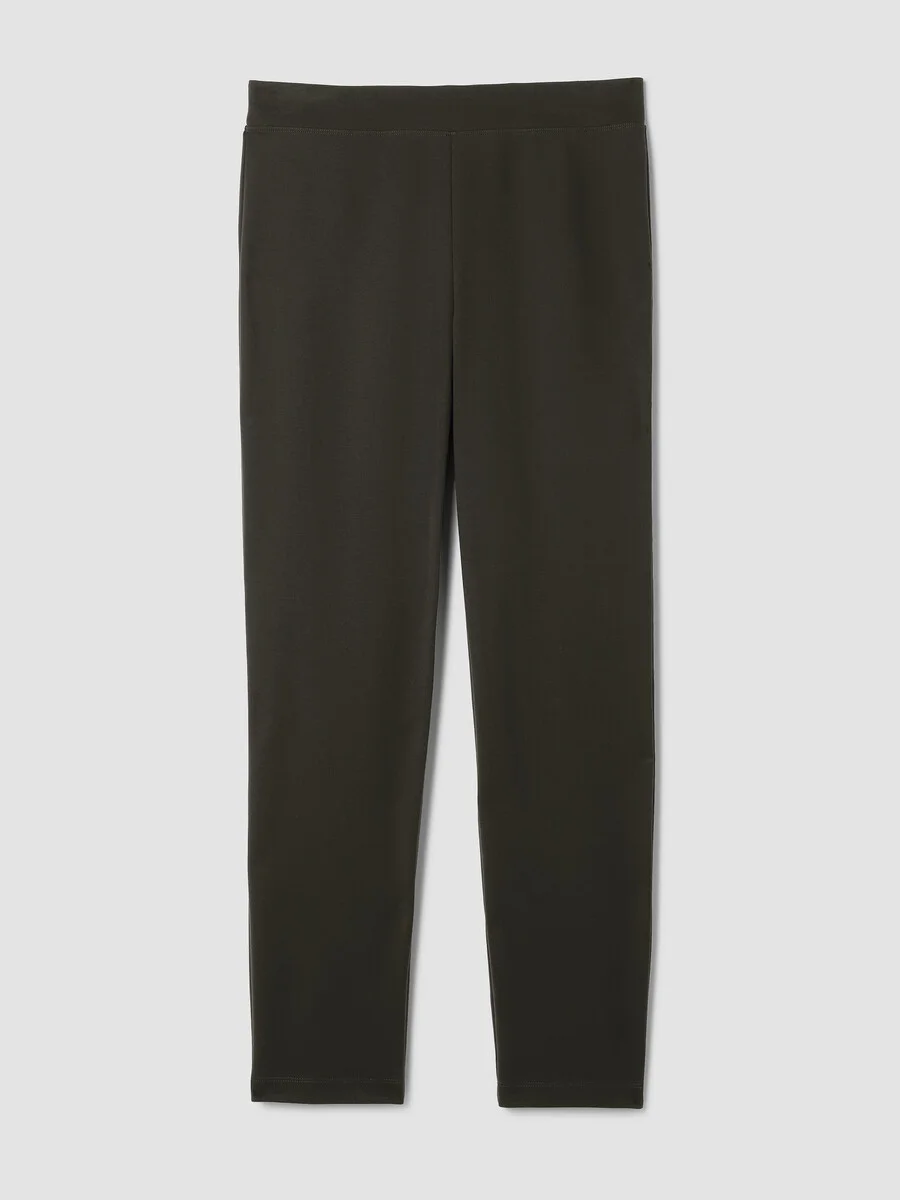 Structured and streamlined, our best-selling slim pant that reinvents layering. In stretch ponte made with Tencel™ Lyocell. Made in a Fair Trade Certified™ factory. Style No. F5TJX-P0696 DESIGN - Fits close to the body. Our slim fit is easier than the industry standard—with stretch for maximum comfort. - Kalyane is 5'10" and wears a size S. - 2-inch elastic waistband, back darts for shape. - 10-inch rise; 28 1/2-inch inseam; 6 1/2-inch leg opening (size S). 9-inch rise; 26 1/2-inch inseam; 6-inch leg opening (size PS). 12-inch rise; 28 1/2-inch inseam; 7-inch leg opening (size 1X). - Style No. F5TJX-P0696 FABRIC - The sophistication of our signature doubleknit, now made with recycled nylon. Just the right amount of structure—and the right amount of stretch. - Machine wash cold. Line dry. - Made in Vietnam. 66% Tencel™ Lyocell/29% Recycled Nylon/3% Elastane/2% Nylon. SUSTAINABILITY - Our Fair Trade Certified™ factories meet rigorous social and environmental standards. By choosing Fair Trade Certified™ products, you’re helping to improve the lives of workers, build resilient communities and protect the environment. - Tencel™ Lyocell fiber is made from responsibly harvested trees. - Recycled nylon keeps waste out of the landfill. It's part of our commitment to changing the way clothes are made.