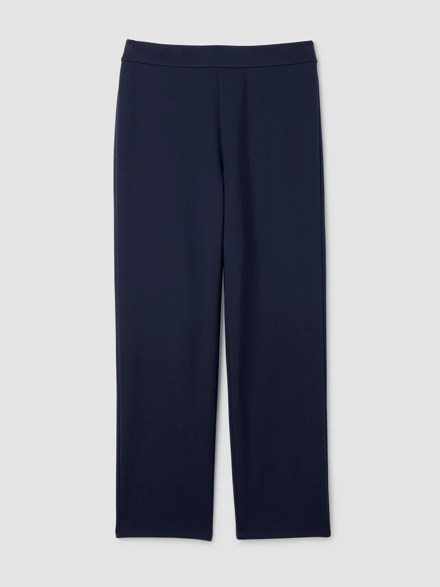 Simple and streamlined. An effortless straight pant in our sleek stretch ponte. Made in a Fair Trade Certified™ factory. Style No. F5TJX-P4655 DESIGN - Straight through the leg. Fits the body with ease. - Kalyane is 5'10" and wears a size S. - 2-inch elastic waistband. - Back darts for shape. - 10 1/2-inch rise; 27 1/2-inch inseam; 8-inch leg opening (size S). 10-inch rise; 25 1/2-inch inseam; 7 1/2-inch leg opening (size PS). 12-inch rise; 27 1/2-inch inseam; 9-inch leg opening (size 1X). - Style No. F5TJX-P4655 FABRIC - The sophistication of our signature doubleknit, now made with recycled nylon. Just the right amount of structure—and the right amount of stretch. - Machine wash cold. Line dry. - Made in Vietnam. 66% Tencel™ Lyocell/29% Recycled Nylon/3% Elastane/2% Nylon. SUSTAINABILITY - Our Fair Trade Certified™ factories meet rigorous social and environmental standards. By choosing Fair Trade Certified™ products, you’re helping to improve the lives of workers, build resilient communities and protect the environment. - Tencel™ Lyocell fiber is made from responsibly harvested trees. - Recycled nylon keeps waste out of the landfill. It's part of our commitment to changing the way clothes are made.