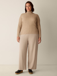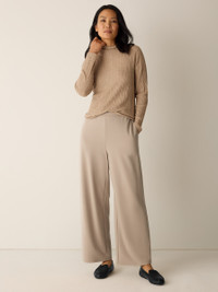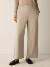Soft yet structured, a wide-leg ponte pant that's easy to live in—and easy to wash. Made in a Fair Trade Certified™ factory. Style No. F5TJX-P4607 DESIGN - Slim through the hips, wider through the leg. Fits the body with ease. - Polina is 5'10" and wears a size XS. - 1 1/2-inch elastic waistband, slash pockets. - 3 1/2-inch back darts for shape. - 10-inch rise; 27-inch inseam; 11-inch leg opening (size XS). 10-inch rise; 25-inch inseam; 10 1/2-inch leg opening (size PS). 13-inch rise; 27-inch inseam; 12-inch leg opening (size 1X). - Style No. F5TJX-P4607 FABRIC - The sophistication of our signature doubleknit, now made with recycled nylon. Just the right amount of structure—and the right amount of stretch. - Machine wash cold. Line dry. - Made in Vietnam. 66% Tencel™ Lyocell/29% Recycled Nylon/3% Elastane/2% Nylon. SUSTAINABILITY - Our Fair Trade Certified™ factories meet rigorous social and environmental standards. By choosing Fair Trade Certified™ products, you’re helping to improve the lives of workers, build resilient communities and protect the environment. - Tencel™ Lyocell fiber is made from responsibly harvested trees. - Recycled nylon keeps waste out of the landfill. It's part of our commitment to changing the way clothes are made.
