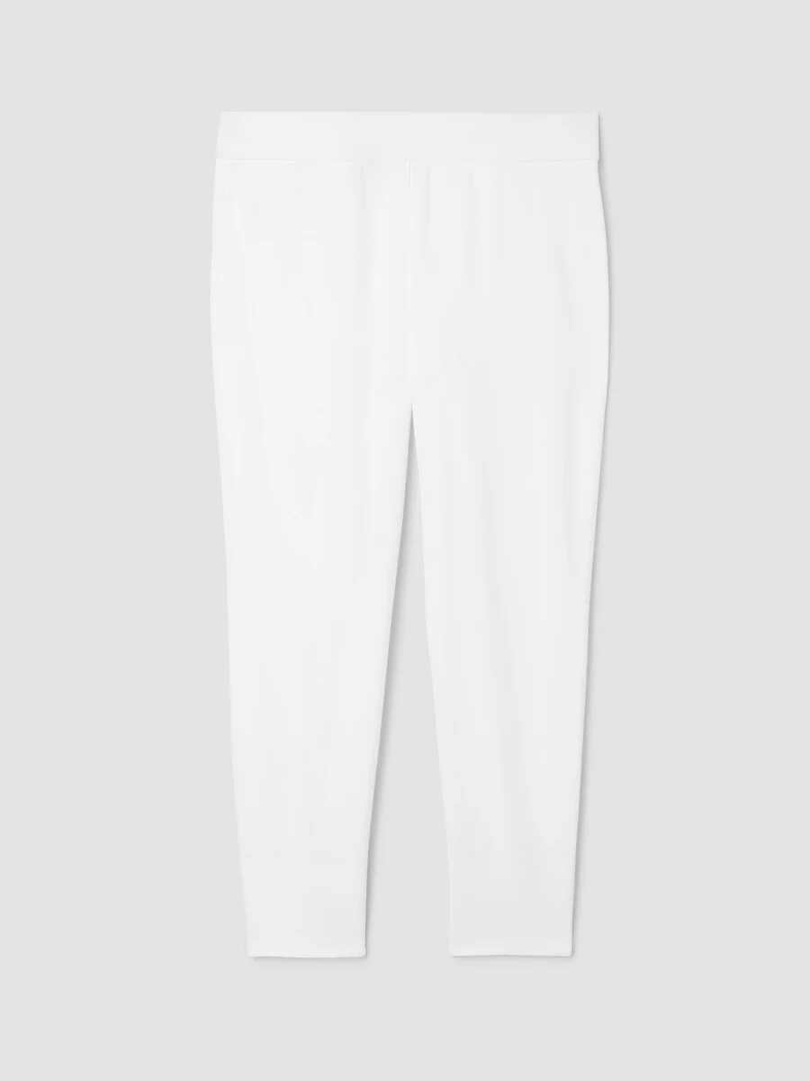 A polished slim pant in a signature fabric we count on. With a cropped length and back slits, in our Washable Stretch Crepe. Style No. S6TKO-P4858 DESIGN - Fits close to the body. Our slim fit is easier than the industry standard—with stretch for maximum comfort. - Kalyane is 5'10" and wears a size S in Black. Nina is 5'3" and wears a size PS in Black. Christina is 5'10" and wears a size 1X in Black. - 2-inch elastic waistband, 3 1/2-inch slits at center back leg. - Back darts for shape. - 11-inch rise; 26-inch inseam; 6 1/2-inch leg opening (size S). 10-inch rise; 24 1/2-inch inseam; 6-inch leg opening (size PS). 13-inch rise; 26-inch inseam; 7 1/2-inch leg opening (size 1X). - Style No. S6TKO-P4858 FABRIC - From France, our iconic textural knit with sophistication and stretch—now made with recycled nylon. Packs beautifully, goes everywhere. - Machine wash cold. Tumble dry low. - Made in USA of imported materials. 70% Eco Vera Viscose/24% Recycled Nylon/6% Elastane. SUSTAINABILITY - Recycled nylon keeps waste out of the landfill. It's part of our commitment to changing the way clothes are made.
