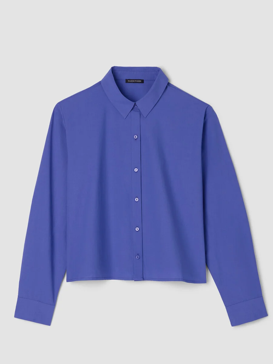 The classic collar shirt—a wardrobe essential, in a shorter silhouette. Relaxed yet elevated in a poplin weave made from organic cotton. Made in a Fair Trade Certified™ factory. Style No. F5AJH-T6109 DESIGN - Close at the shoulders, wider at the hem. A silhouette that fits the body withease. - Select colors may vary by store. - Bo Bay is 5'9" and wears a size XS, which measures 21 1/2 inches on the body.Size 1X measures 24 1/2 inches on the body. - Classic collar, button front and button cuffs with double pleat. - Back yoke with center box pleat; 1 1/2-inch side slits. - River shell buttons. - Style No. F5AJH-T6109 FABRIC - Light and drapey. Fine organic cotton in a smooth poplin weave. Garment washedfor extra softness. - Machine wash cold. Line dry. - Made in Indonesia. 100% Organic Cotton. SUSTAINABILITY - Our Fair Trade Certified™ factories meet rigorous social and environmentalstandards. By choosing Fair Trade Certified™ products, you’re helping to improvethe lives of workers, build resilient communities and protect the environment. - Organic farming supports clean water and healthy soil.