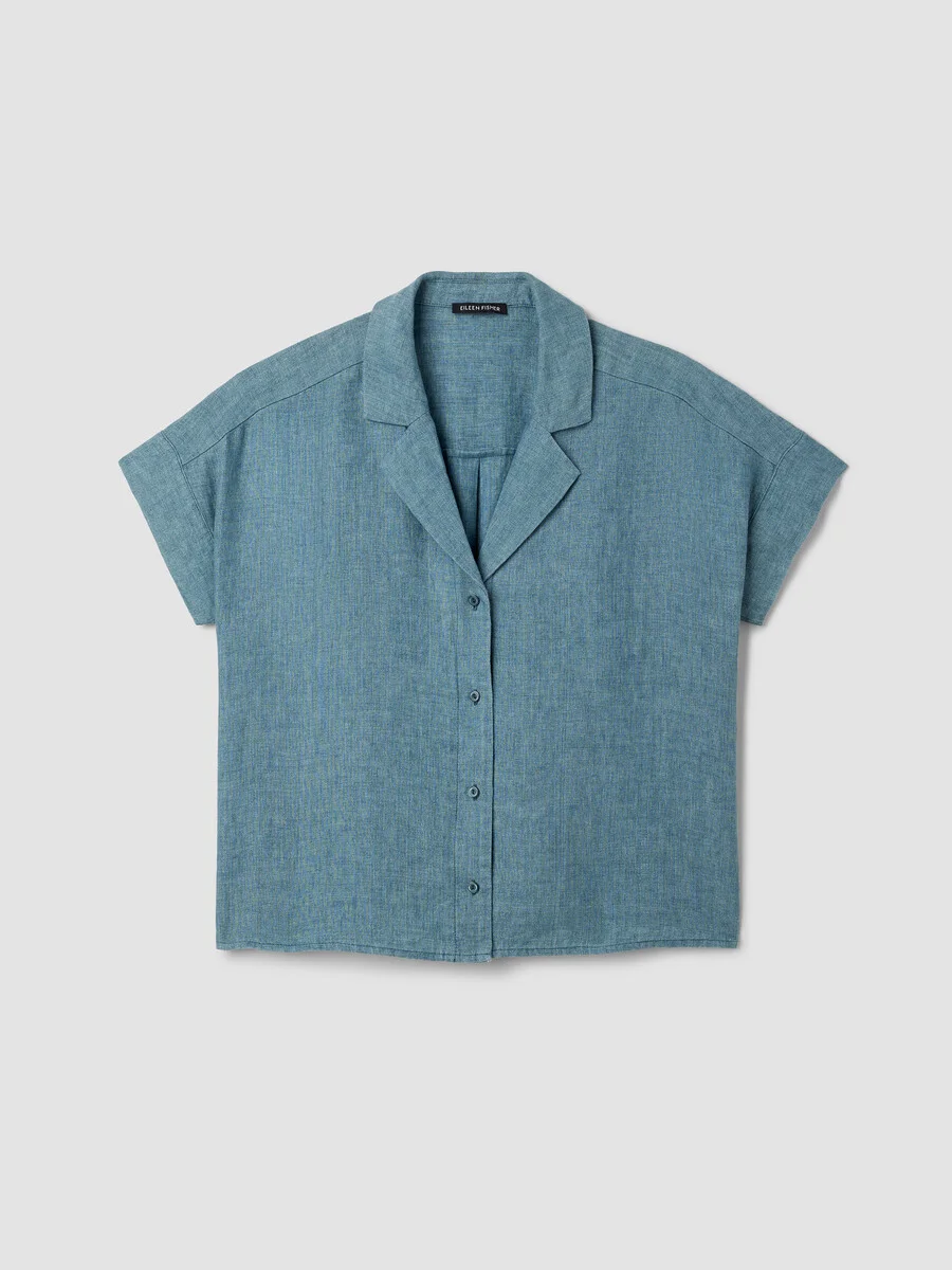 The notch collar shirt—a classic made modern, in our signature Organic Linen. Made in a Fair Trade Certified™ factory. Style No. S6LOL-T6458 DESIGN - Designed with a generous, boxy fit that drapes away from the body to create movement. - Only available at select EILEEN FISHER stores. - Ravyanshi is 5'8" and wears a size S in Deep Dive, which measures 23 inches on the body. Size 1X measures 25 1/2 inches on the body. - Notch collar, button front with river shell buttons. - Back yoke with center box pleat. - Style No. S6LOL-T6458 FABRIC - Crisp, textural linen with the nuanced color that comes from delave dyeing. Each garment is unique. - Machine wash cold. Tumble dry low. Do not dry clean. - Made in Indonesia. 100% Organic Linen. SUSTAINABILITY - Our Fair Trade Certified™ factories meet rigorous social and environmental standards. By choosing Fair Trade Certified™ products, you’re helping to improve the lives of workers, build resilient communities and protect the environment. - Organic farming supports clean water and healthy soil. - This fabric is bluesign® APPROVED. It's dyed with safer chemistry using less water and less energy, meeting the bluesign® CRITERIA.