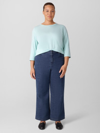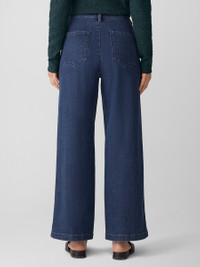 A sophisticated take on denim. The wide-leg jean with a fly front and pockets, in a blend of organic and recycled cotton. Made in a Fair Trade Certified™ factory. Style No. F5BDE-P4882 DESIGN - Slim through the hips, wider through the leg. Fits the body with ease. - Select colors may vary by store. - Kalyane is 5'10" and wears a size S. - 1 1/2-inch waistband, fly front with button closure. - Front scoop pockets, back patch pockets, belt loops. - 11-inch rise; 30-inch inseam; 11-inch leg opening (size S). 10 1/2-inch rise; 28-inch inseam; 10 1/2-inch leg opening (size PS). 13-inch rise; 30-inch inseam; 12-inch leg opening (size 1X). - Style No. F5BDE-P4882 FABRIC - An update to our classic-weight denim. We blended organic and recycled cotton, and added a touch of stretch for comfort. - Machine wash cold. Tumble dry low. Color transfer may occur. - Made in Indonesia. 78% Organic Cotton/20% Recycled Cotton/2% Elastane. SUSTAINABILITY - Our Fair Trade Certified™ factories meet rigorous social and environmental standards. By choosing Fair Trade Certified™ products, you’re helping to improve the lives of workers, build resilient communities and protect the environment. - Organic farming supports clean water and healthy soil.