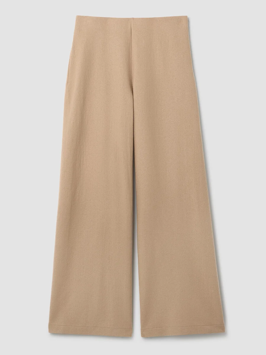 The one Eileen calls the "magic pant.” A full-length style that instantly elongates. Even better, it’s made with regenerative wool—and made in a Fair Trade Certified™ factory. Style No. F5BOB-P4812 DESIGN - Slim through the hips, wider through the leg. Fits the body with ease. - Jisu is 5'9" and wears a size XS. - 1 1/2-inch elastic waist. - Back and side darts; side zipper. - 11-inch rise; 30-inch inseam; 12-inch leg opening (size XS). 11-inch rise;28-inch inseam; 11 1/2-inch leg opening (size PS). 13-inch rise; 30-inch inseam;13-inch leg opening (size 1X). - Style No. F5BOB-P4812 FABRIC - Our lightweight wool jersey is soft, smooth and luxurious. This fiber is sourcedfrom farms that use regenerative practices to promote soil health, biodiversity,water quality and emissions removal—and also support the communities where thewool is produced. - Dry clean only. - Made in Vietnam. 100% Wool. SUSTAINABILITY - Our Fair Trade Certified™ factories meet rigorous social and environmentalstandards. By choosing Fair Trade Certified™ products, you’re helping to improvethe lives of workers, build resilient communities and protect the environment. - By sourcing ZQRX wool, EILEEN FISHER is part of a collective movement to support500+ wool growers across New Zealand, Australia and South Africa transitiontoward a regenerative future.