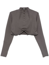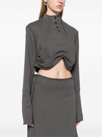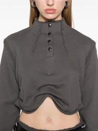 Amish sweatshirt Highlights - Charcoal grey - Cotton - Jersey texture - Front button placket - High neck - Long sleeves - Split cuffs - Gathered detailing at the hem - French terry lining - Raw-cut hem - Cropped Made in United States Composition Cotton 100% SIZE & FIT Model measurements Height 5 ft 9 in(1.75 m) Bust/Chest 31.88 in(81 cm) Hips 34.64 in(88 cm) Waist 24.01 in(61 cm) FittingInformation Designed for a relaxed fit, this piece allows for comfort and movement when worn Made from a midweight non-stretch fabric, this piece offers minimal elasticity when worn