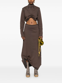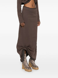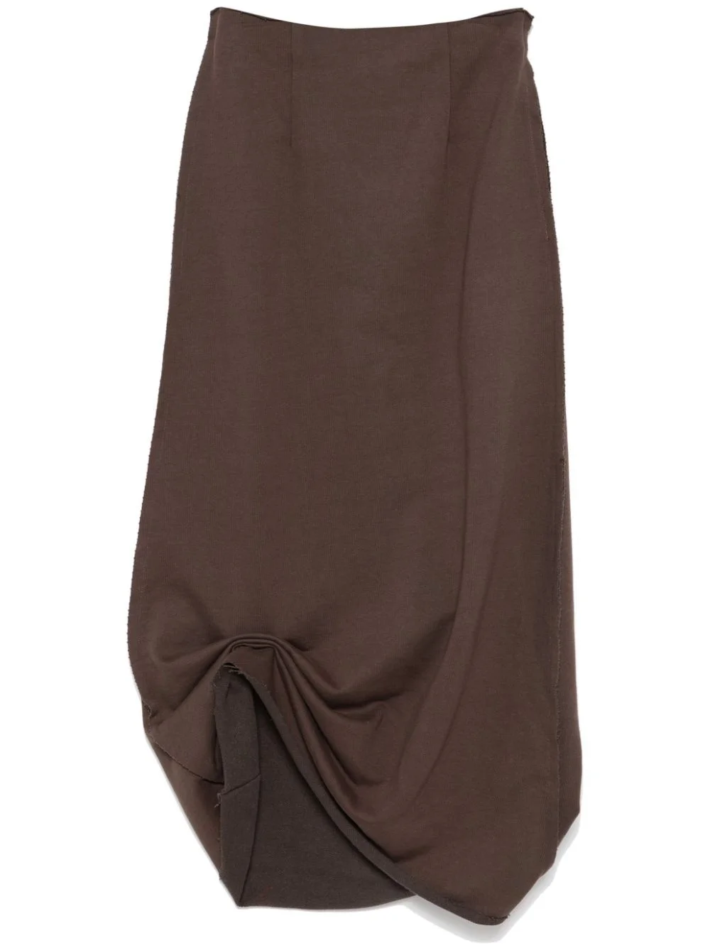 Amish maxi skirt Highlights - Cedar brown - Cotton blend - Jersey texture - Concealed side zip fastening - Gathered detailing at the hem - French terry lining - Pencil silhouette - Asymmetric hem - Long length Made in United States Composition Cotton 97%, Spandex/Elastane 3% SIZE & FIT Model measurements Height 5 ft 11 in(1.8 m) Bust/Chest 31.49 in(80 cm) Hips 36.61 in(93 cm) Waist 24.4 in(62 cm) FittingInformation Designed with an asymmetric hem, this skirt is intended to be worn just below the waist Made from a midweight stretch fabric, this piece offers elasticity and flexibility when worn