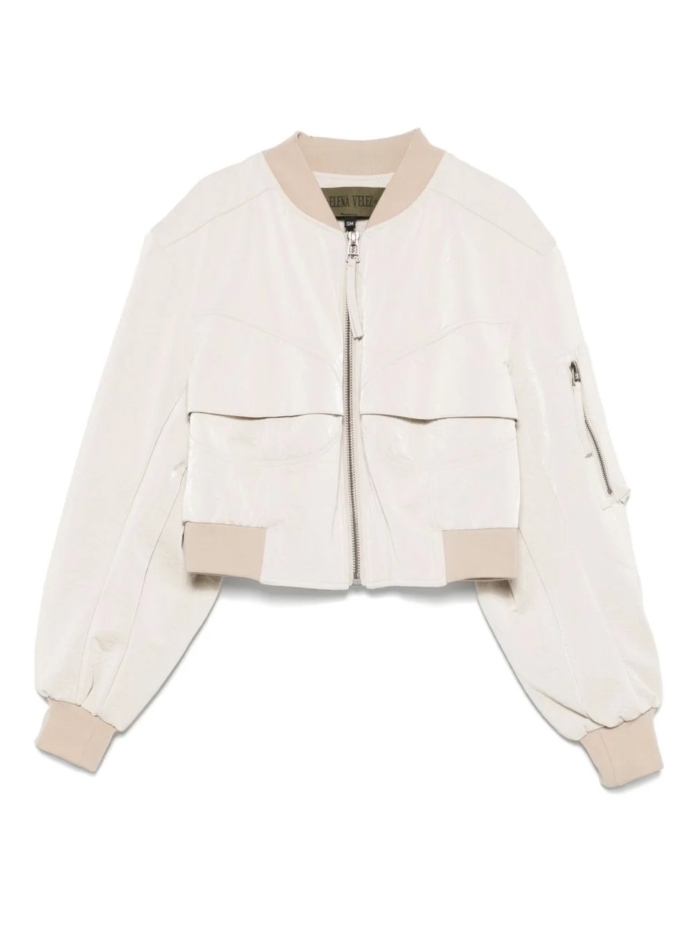 bustier bomber jacket Highlights - Light beige - Front zip fastening - Two chest flap pockets - Sleeve zip pocket - Ribbed cuffs and hem Imported Composition Fabric 100% SIZE & FIT Model measurements Height 5 ft 11 in(1.8 m) Bust/Chest 32.67 in(83 cm) Hips 36.22 in(92 cm) Waist 24.4 in(62 cm) FittingInformation Designed for a slim fit that sits just away from the body offering a close yet comfortable fit The elasticated waist allows for a comfortable fit Made from a midweight non-stretch fabric