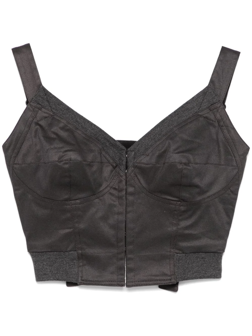 bustier-style top Highlights - Dark grey - Bustier-style neckline - Front hook and eye fastening - Sweetheart neck - Two adjustable shoulder straps - Ribbed trim - Unlined - Ribbed hem Made in United States Composition Polyester 67%, Rayon 30%, Spandex/Elastane 3% SIZE & FIT Model measurements Height 5 ft 9 in(1.75 m) Bust/Chest 31.88 in(81 cm) Hips 34.64 in(88 cm) Waist 24.01 in(61 cm) FittingInformation Designed for a close fit throughout The adjustable shoulder straps allow for a preferred fit when worn Made from a midweight stretch fabric, this piece offers elasticity and flexibility when worn